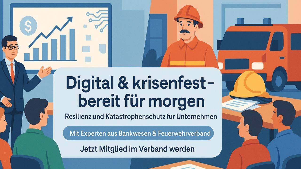 Unter dem Titel Digital & krisenfest 1 – Was tun, wenn es ernst wird? veranstaltete der Verband „Der Mittelstand. BVMW“ am 17. Juli 2025 ein Netzwerktreffen rund um unternehmerische Resilienz und Vorsorge. Die Veranstaltung mit Referenten aus den verschiedensten Bereichen richtete sich an Macherinnen und Macher aus kleinen und mittleren Unternehmen, Handwerk, Digitalwirtschaft sowie die beratenden Berufe. Ziel war es, gemeinsam Impulse zu setzen, wie Unternehmen sich auf mögliche Ausnahmesituationen besser vorbereiten können.